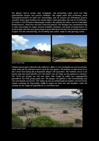 struisvogels. Het was een grote lodge in geaccidenteerd terrein met op diverse niveaus
